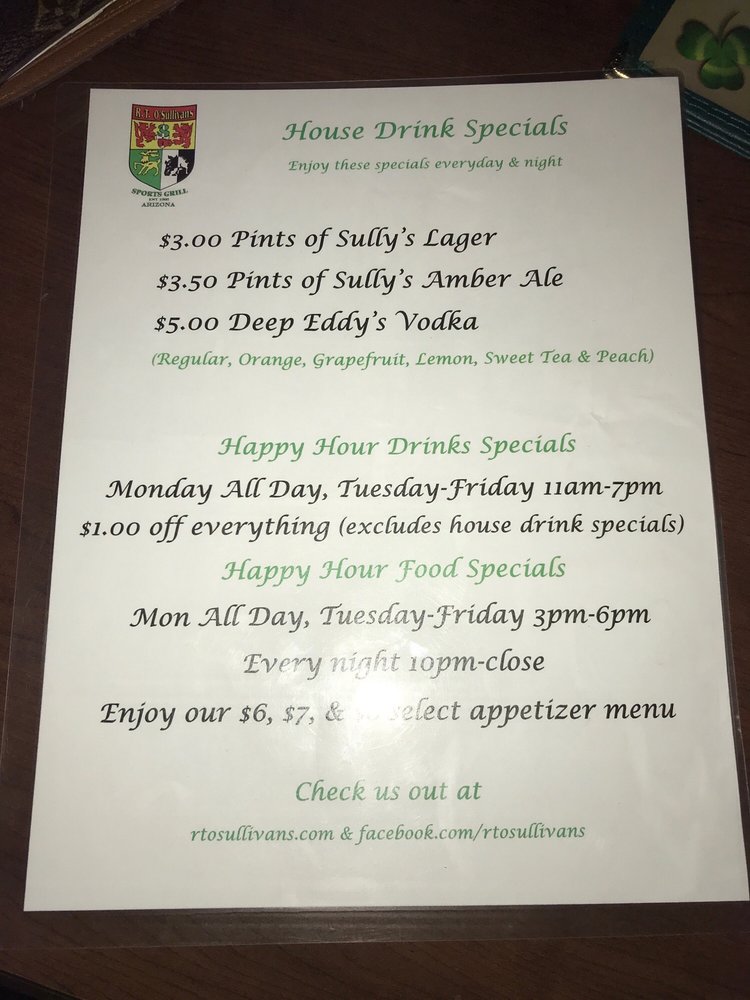 R.T. O'Sullivan's in Scottsdale, AZ is a divey sports grill known for its laid-back atmosphere and great selection of bar fare. The menu features delicious appetizers like Fish Sliders, Irish Sliders, and Meatloaf Sliders, as well as hearty salads like Caesar Salad and Cobb Salad. Their Mama Meyers Chili Soup is a must-try. Customers praise the large patio with plenty of TVs, pool tables, and a sand volleyball court. The bar offers a wide variety of beers, including on-tap Guinness. Service can be hit or miss, but overall, it's a favorite neighborhood spot for many. The fun atmosphere, dog-friendly patio, and mountain views make it the perfect place to relax and enjoy a meal with friends. If you're looking for a casual spot with good food and a vibrant ambiance, R.T. O'Sullivan's is the place to be.